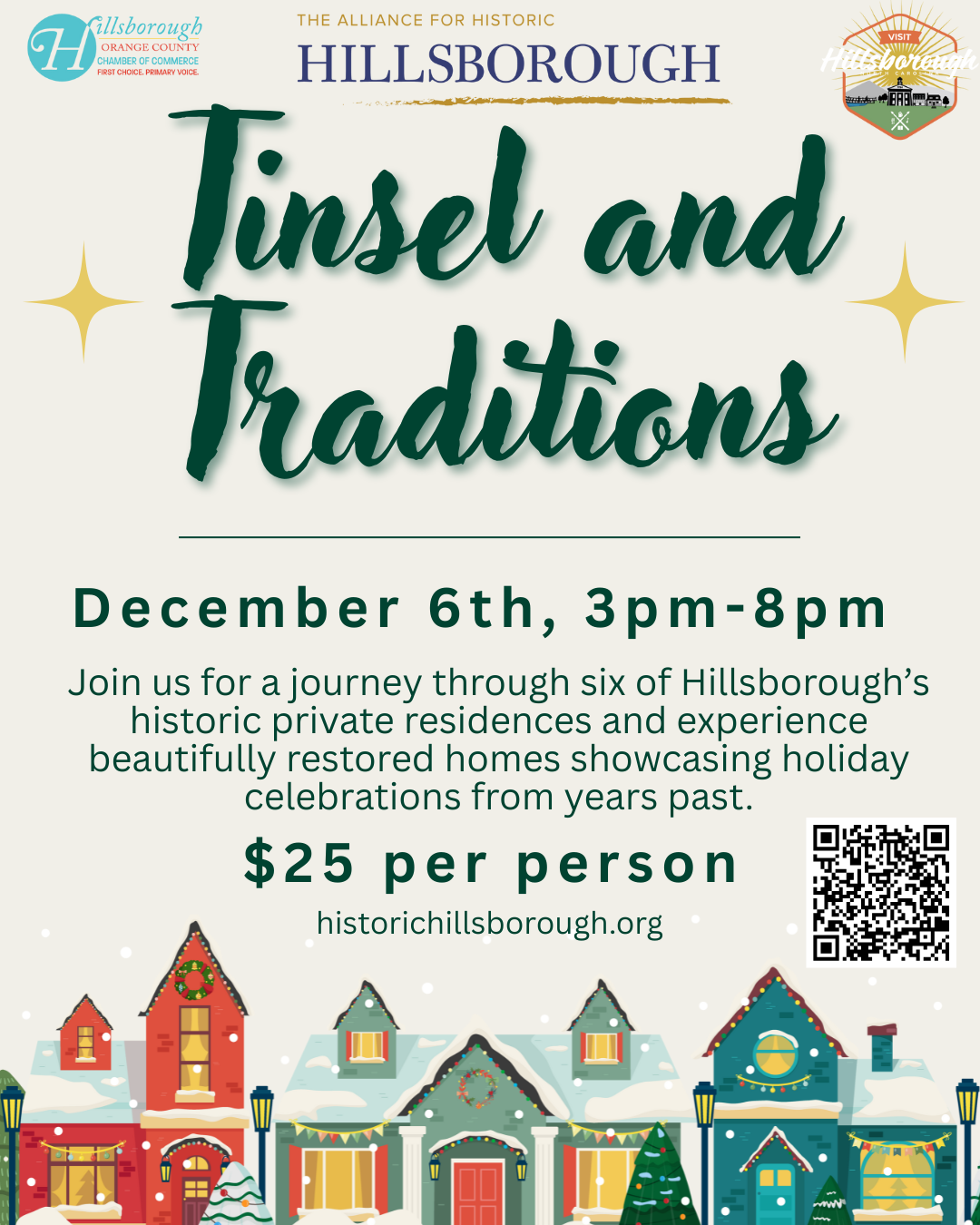 Step inside Hillsborough’s history with this reimagined take on the beloved Candlelight Home Tours. Visit six homes, each representing a different time period, all within the town’s historic district.