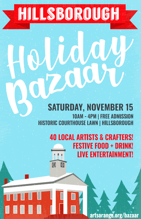 For 2025, the Makers at the Mill Holiday Bazaar heads to the Historic Courthouse Lawn in Downtown Hillsborough!