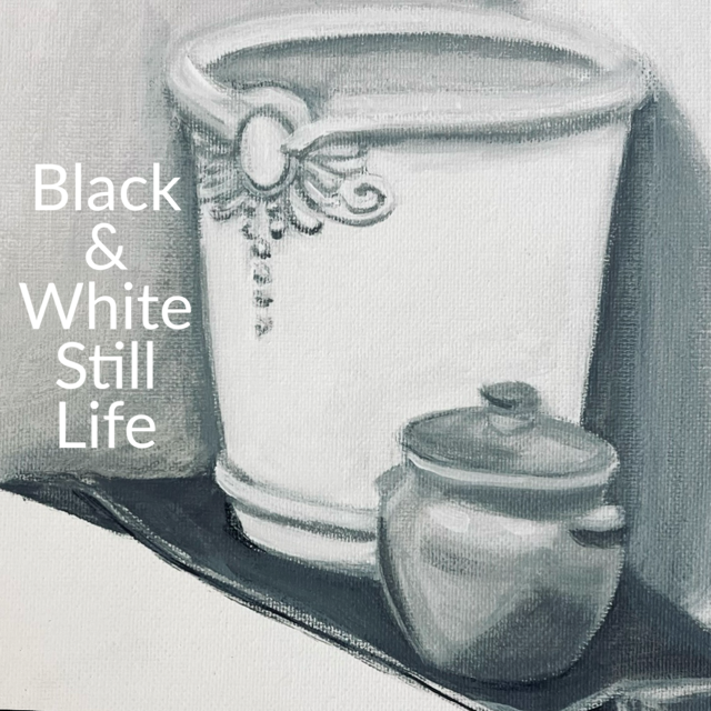 The lesson for March is Black & White Still Life Painting. This month you will be guided to create a drawing from a simple still life setting.