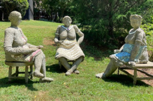 A Gathering of Women, a sculpture by artists Virginia Bullman and LaNelle Davis, was installed in 2021 in Turnip Patch Park next to the butterfly garden. The concrete and mosaic ceramic tile sculpture features figures Pearl, Hattie, and Emma – women the artists knew. The installment was donated to the Town of Hillsborough in memory of Mary Jane Burns by Dr. W. Woodrow Burns Jr. of Chapel Hill.