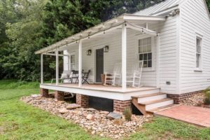 Relocated 1915 Cottage: Located in Hillsborough’s historic district, walking distance to restaurants, shops, and outdoor recreation. “Sit out on a front porch rocker facing the Eno River. This property was saved from demolition, disassembled, moved, and restored in 2018. Most of its historic structure remains, including heart pine floors, original shiplap, and cathedral ceilings.”