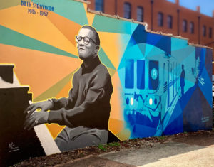 This colorful mural of Billy Strayhorn, a renowned composer and pianist, lives on the side of Volume Records. It was created by artist Max Dowdle in collaboration with Volume Records co-owner Tony Lopez. The mural is named Take the A Train after one of Strayhorn’s most popular compositions. Strayhorn spent much of his childhood in Hillsborough visiting his grandparents, and there is also a historical marker near where his grandparent’s house was located in Hillsborough. The mural was sponsored by the Hillsborough Tourism Development Authority and the Hillsborough Arts Council.