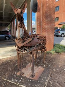 Jack is a beloved sculpture installed outside of Weaver Street Market by artist Johnathan Bowling. Bowling works out of Greenville, NC, and uses recycled and repurposed materials for his work. Check out his website at https://jonathanbowling.com/home.html.