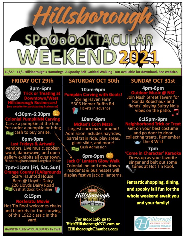 Hillsborough’s Hauntings: A Spooky Self-Guided Walking Tour presented by the Alliance for Historic Hillsborough is a free download available at www.historichillsborough.org.